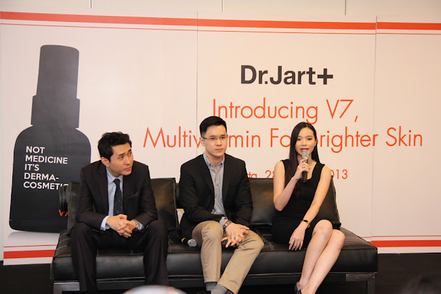And...about the new products from Dr.Jart+, the name is V7. It is made for all the girls who want bright and regenerated skin. V7 helps us to get rid dark spots, dull skin, and acne scars, so it will make our skin clearer and also brighter. The name 'V7' is derived from 7 vitamins contained in this product. Ya, I'll repeat, 7 vitamins!! Vitamin A, B3, B5, C, E, F, and H, all of them in one.